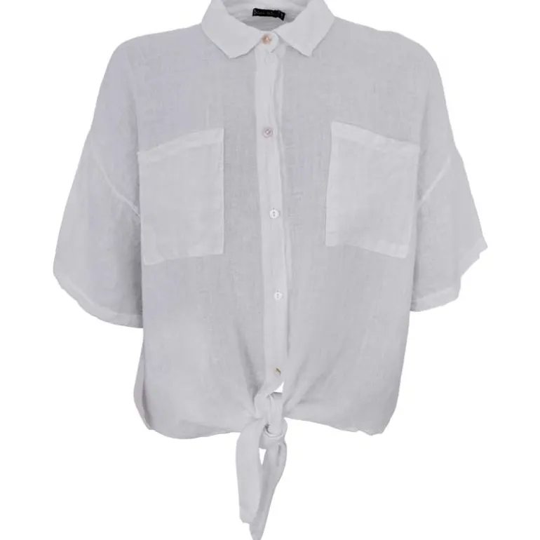 Kortærmer hør skjorte i hvid fra Black Colour.