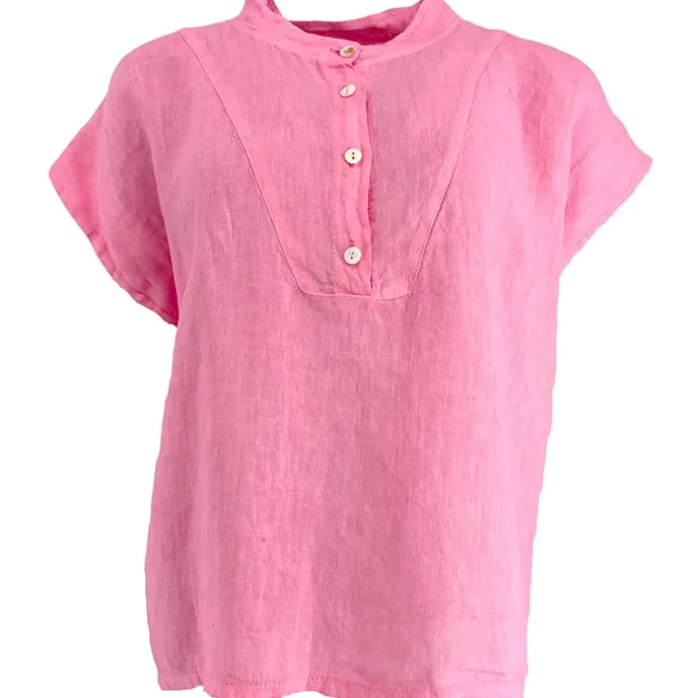 Kortærmet hør bluse i pink fra Cabana Living.