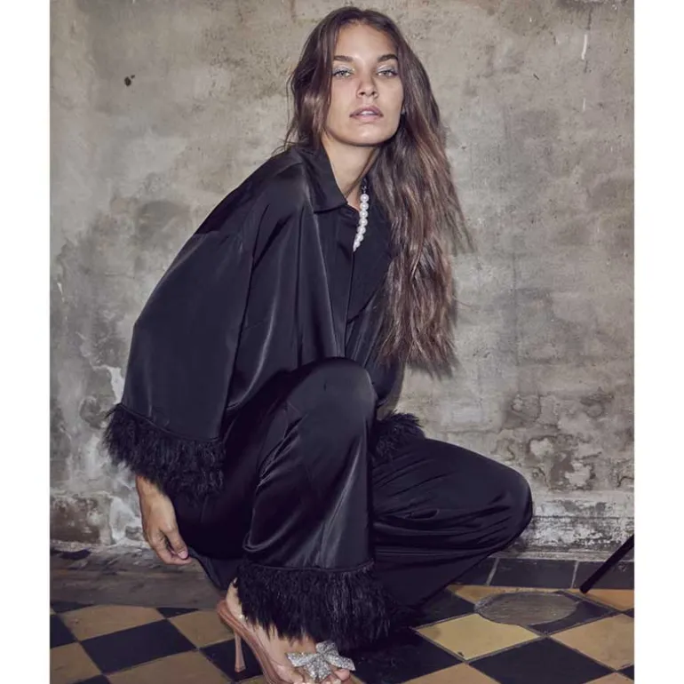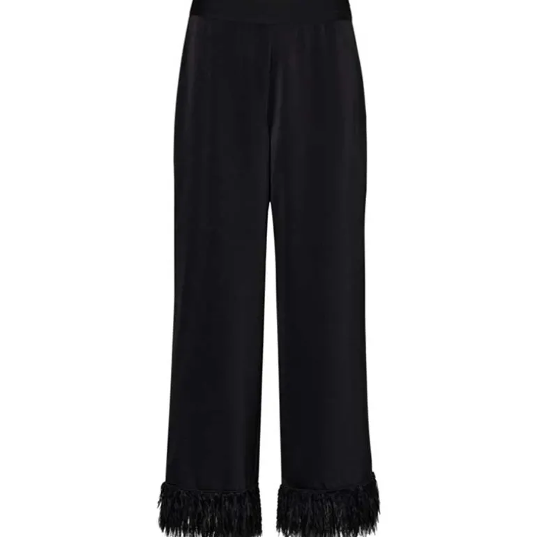 Sorte satin bukser med frynser ved anklen fra Co Couture.