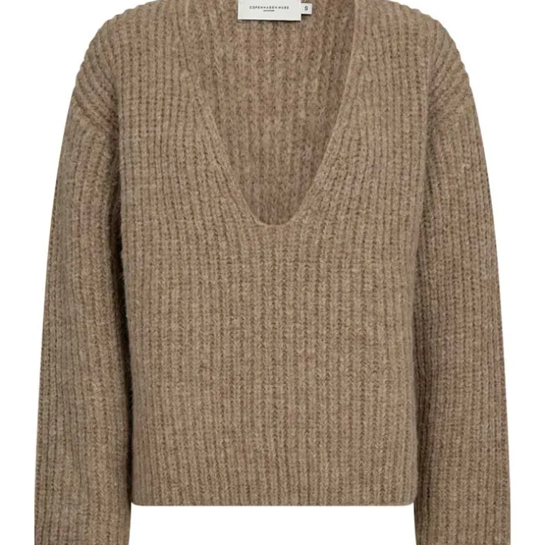 Sandfarvet strik med v-udskæring fra Copenhagen Muse.
