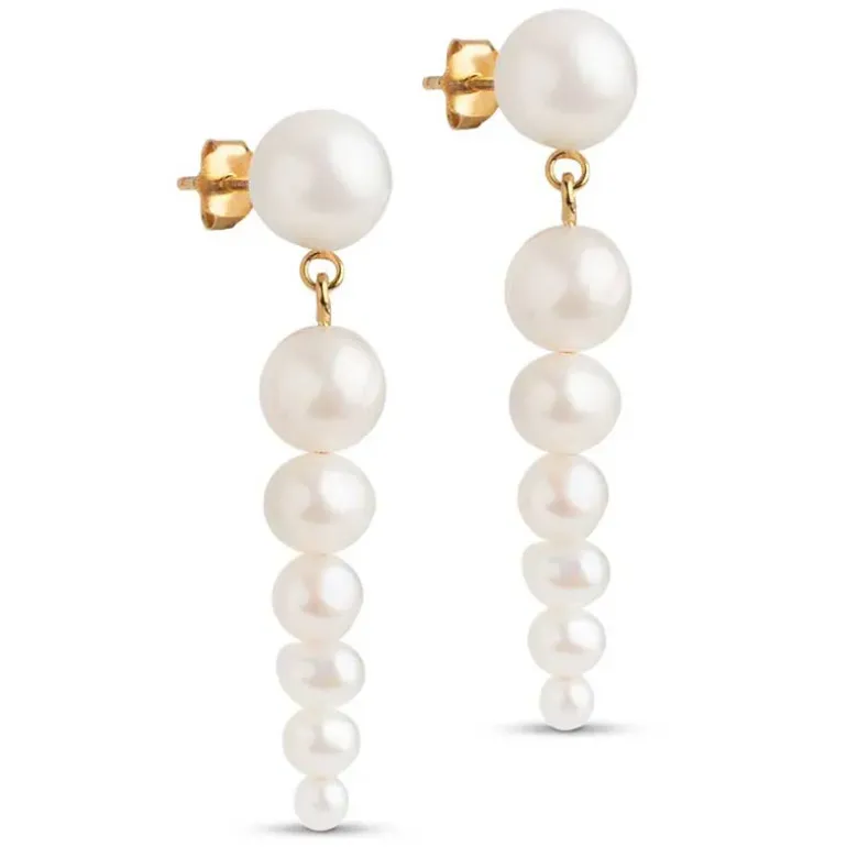 Guld ørestik med fint perle vedhæng fra Enamel.