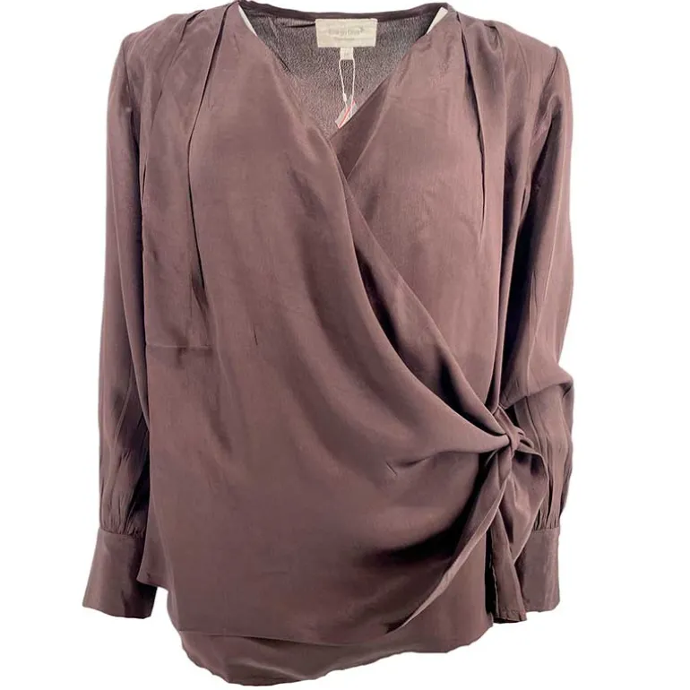 Flot bluse med slå om i brun fra Eva Go Diva.