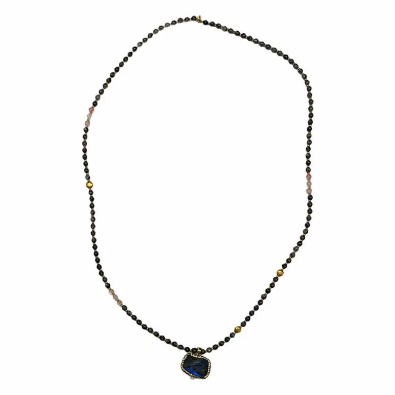 Hipzen perlehalskæde i grå. Halskædens fulde længde måler 100 CM og kan åbnes med lås i nakken. Når halskæden er på går længden til under brystet.