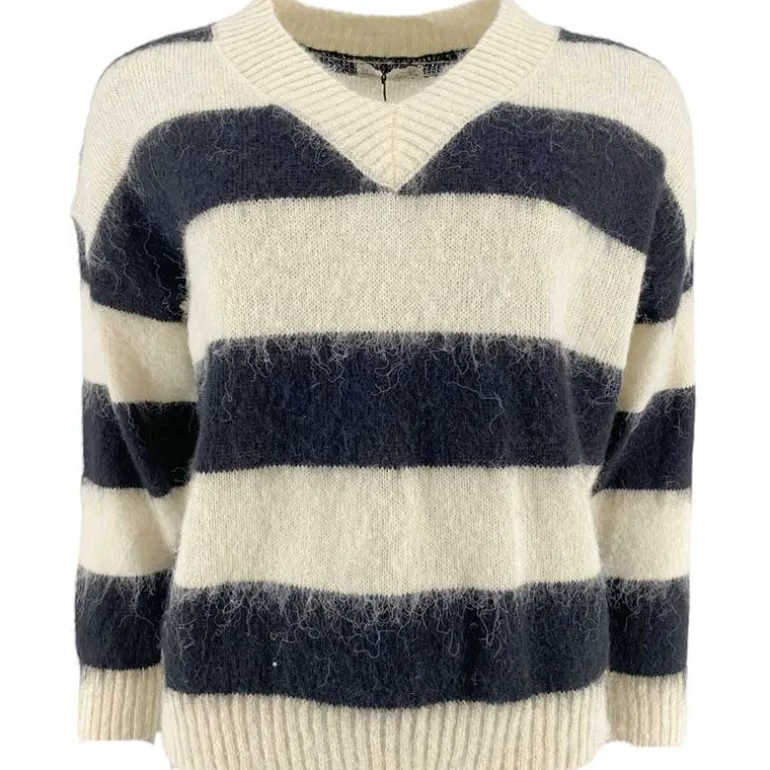 Blok stribet strik fra J By J i lys sandfarvet & sort.