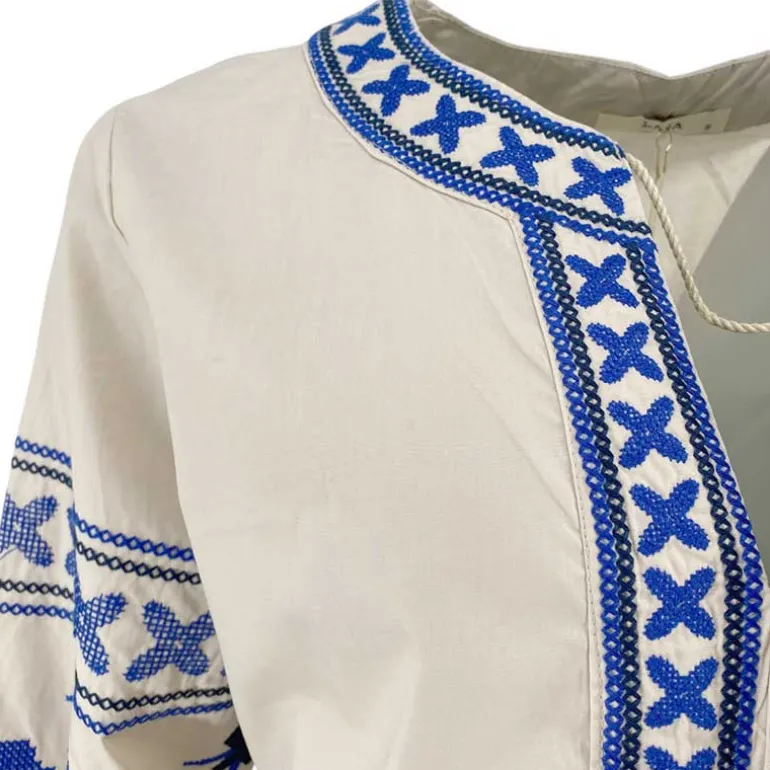 - Fint blåt broderi på ærmer & kroppen