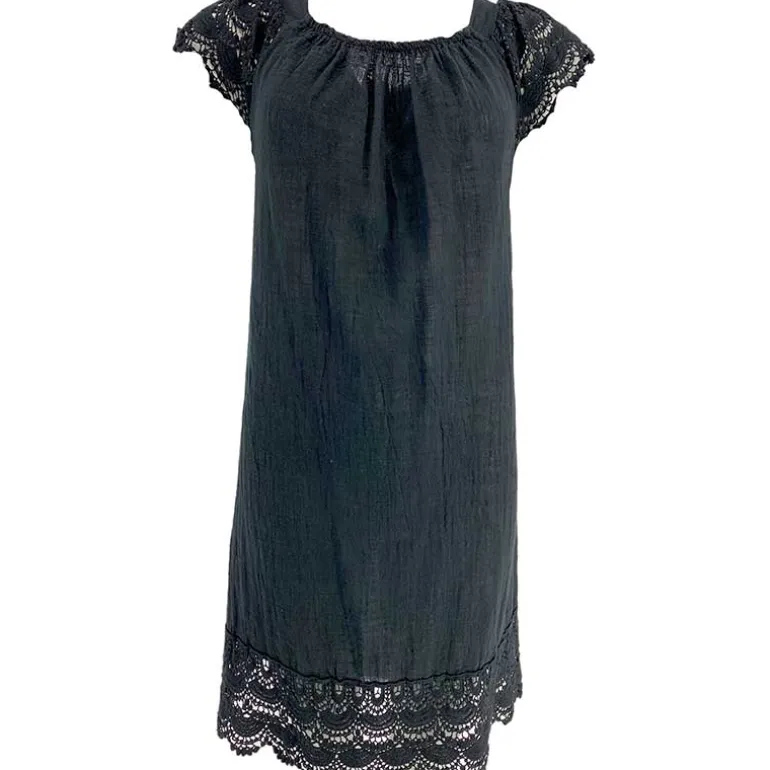 Smuk sommerkjole med fint broderianglaise i sort.