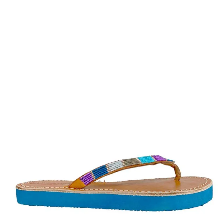 Håndlavet split-toe sandal i blå & brun fra Laidbacklondon.
