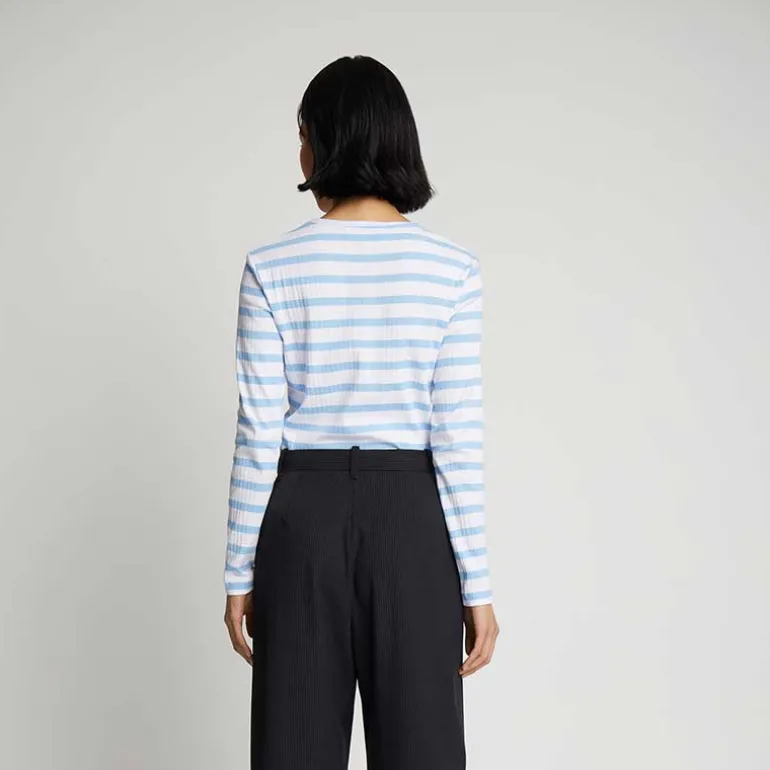 Munthe stribet langærmet t-shirt i lyseblå og hvid.