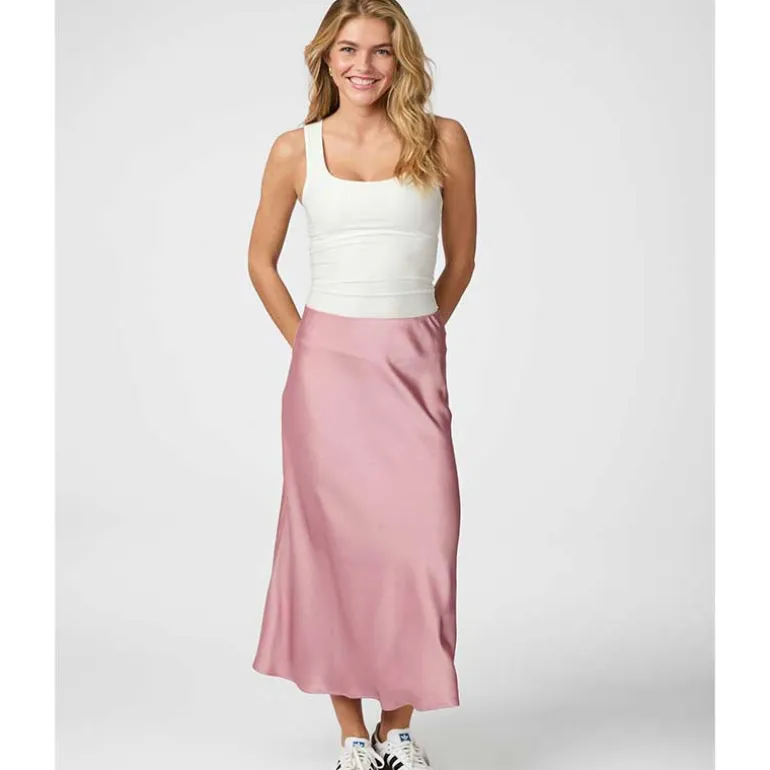 Neo Noir satin nederdel i sart rosa.