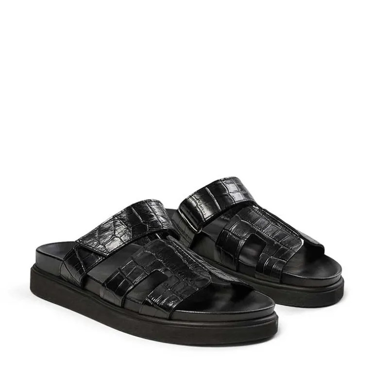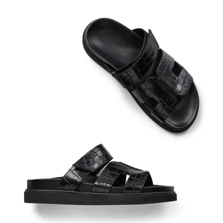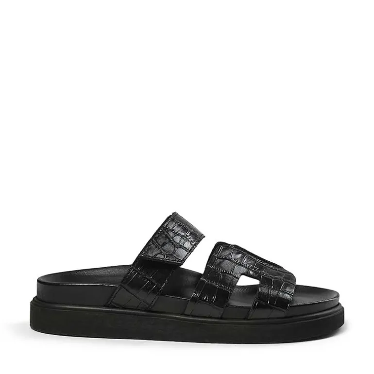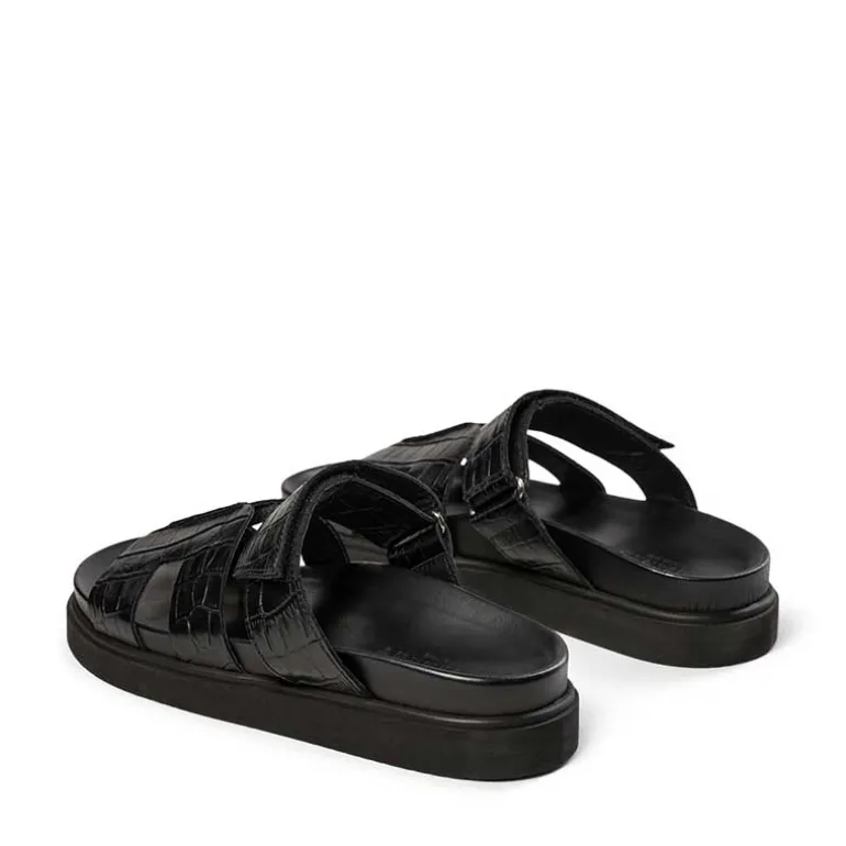 Pavement croco læder sandaler i sort.