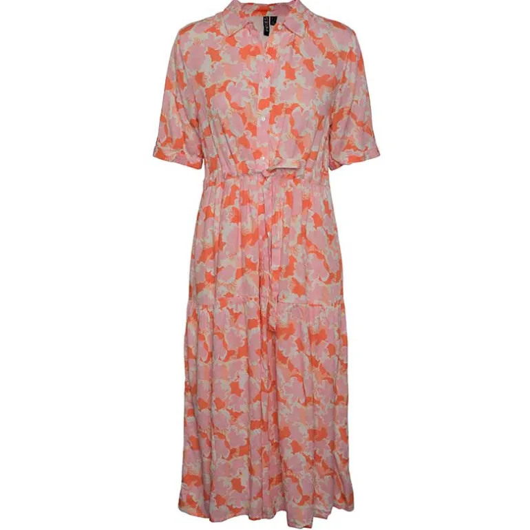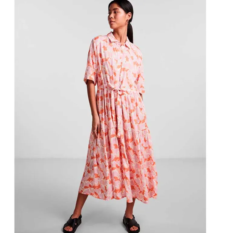 Pieces kjole i lyserød med naturprint.