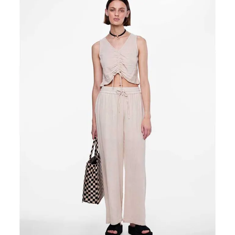 Løse sommerbukser i lys sandfarvet fra Pieces.