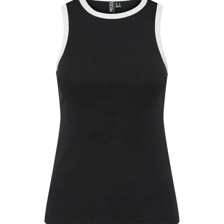 Basis tank top fra Pieces i sort med hvid kant.