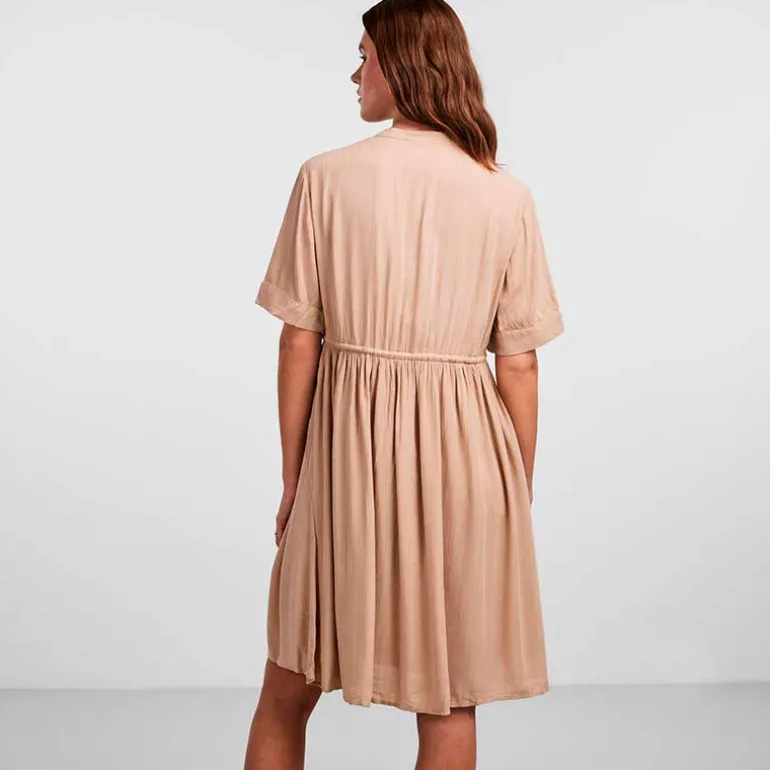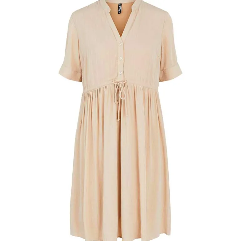 Pieces viskose kjole i sandfarvet.