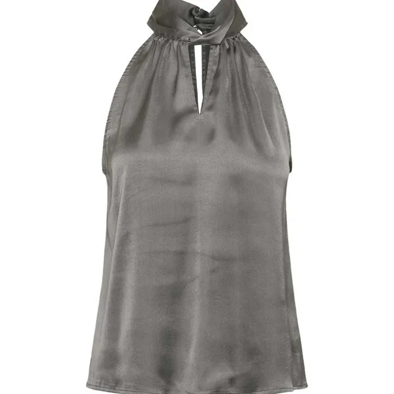 Satin fest top i grå fra Pieces.