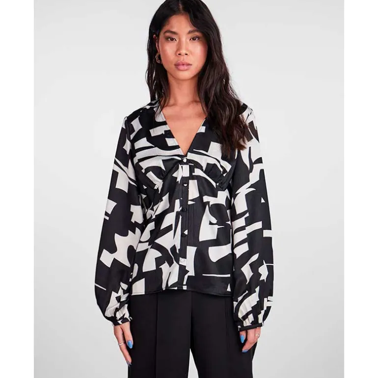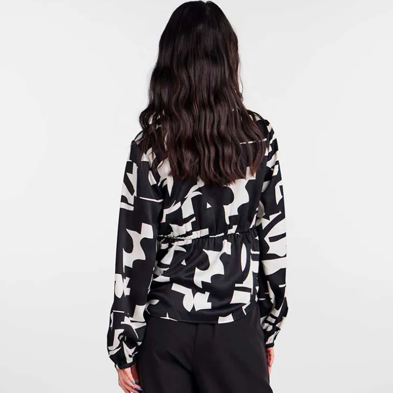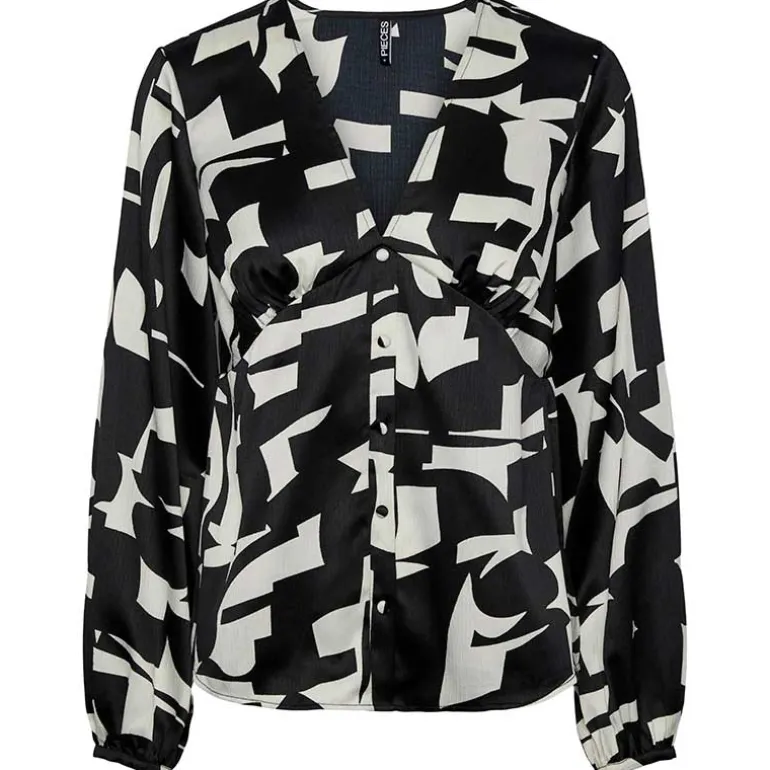 Fin mønstret bluse fra Pieces i sort, til fest eller hverdag.