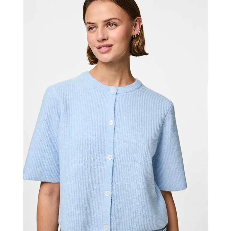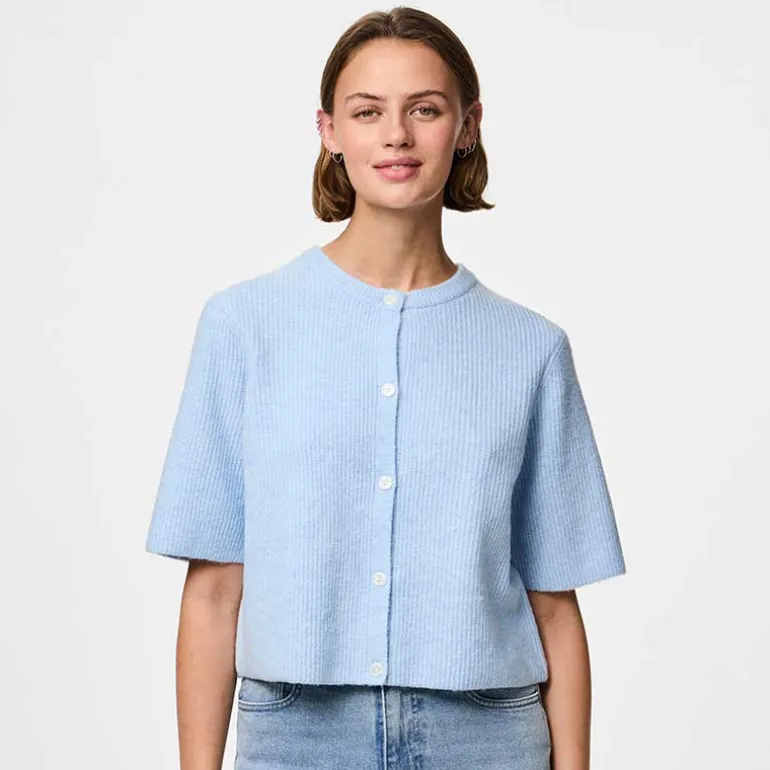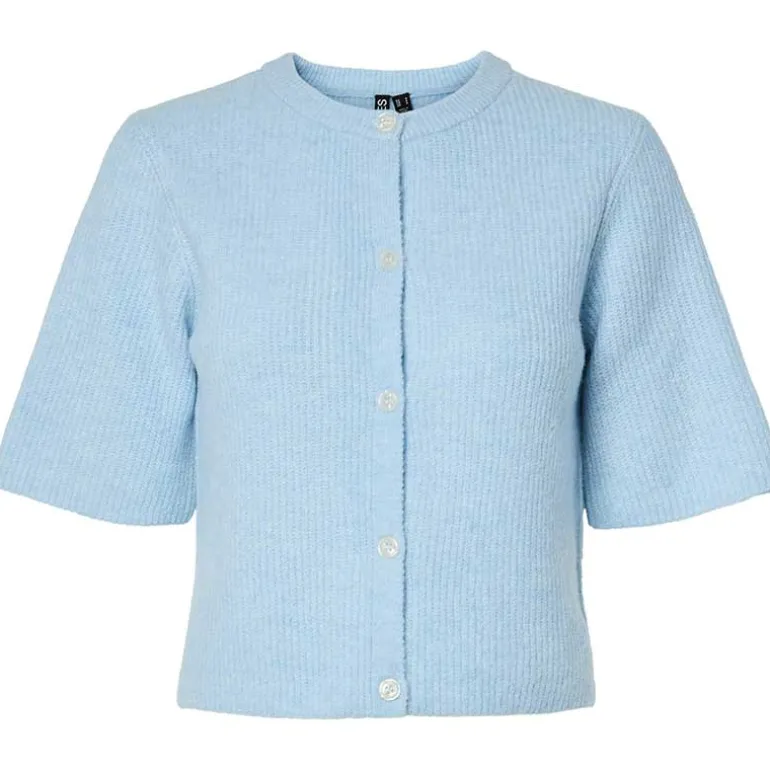 Kortærmet cardigan fra Pieces i lyseblå.