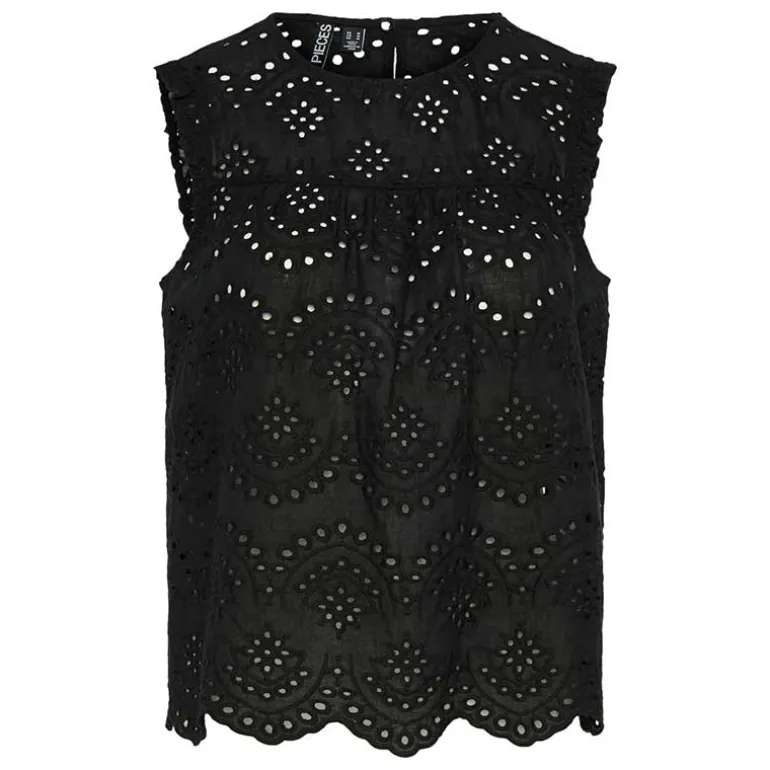 Smuk top med broderi fra Pieces