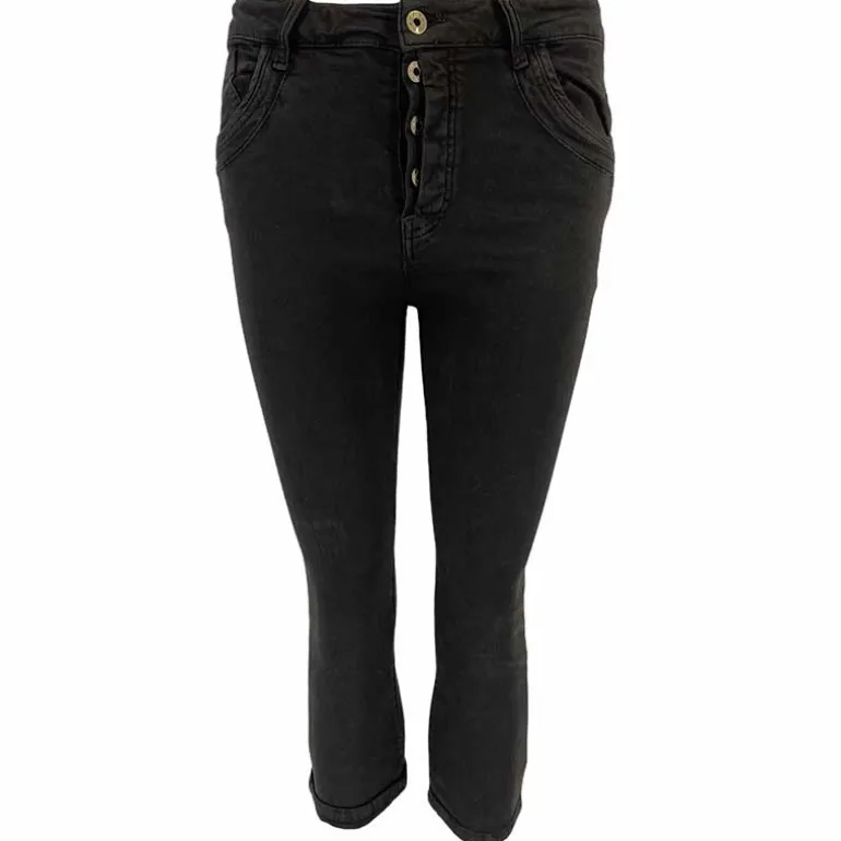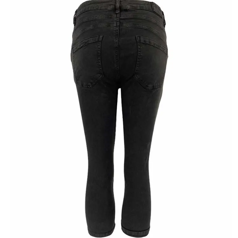 Piro 3/4 bukser i sort. Bukserne har 2 lommer og en lille møntlomme foran, og 2 baglommer. De har stretch og bæltestropper i livet og lukkes med knapper foran.