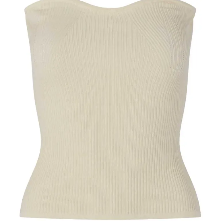 Second female ribstrikket top i sandfarvet.