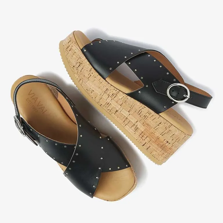 Sorte Via Vai sandaler med nitter i sølv.